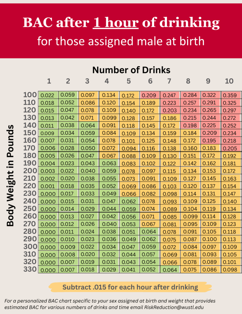 - Sex: Those assigned female at birth tend to have a higher BAC than those assigned male at birth, even if they drink the same amount of alcohol. Please note, assigned sex at birth is used only to help determine BAC and how alcohol may affect your body based on physiology. This may differ from your gender/gender expression. Unfortunately, there is not adequate research at this time to help us understand how taking hormones as part of a gender-affirming process may impact an individual’s experience of alcohol’s effects. For all individuals, we recommend speaking with your doctor for personalized information about the impact of substances on your body.
