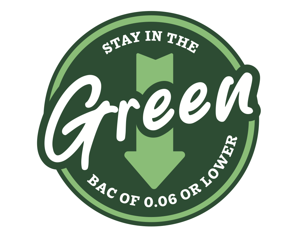 Staying in the Green means keeping your Blood Alcohol Content (BAC) at 0.06 or lower. In a nutshell, at this BAC, people are more likely to experience what they may like about drinking, and less likely to experience what they don’t like. At a BAC of 0.06 or lower, a person is more likely to experience a buzz and feel relaxed/social and is less likely to experience a hangover and doing/saying something they may regret.